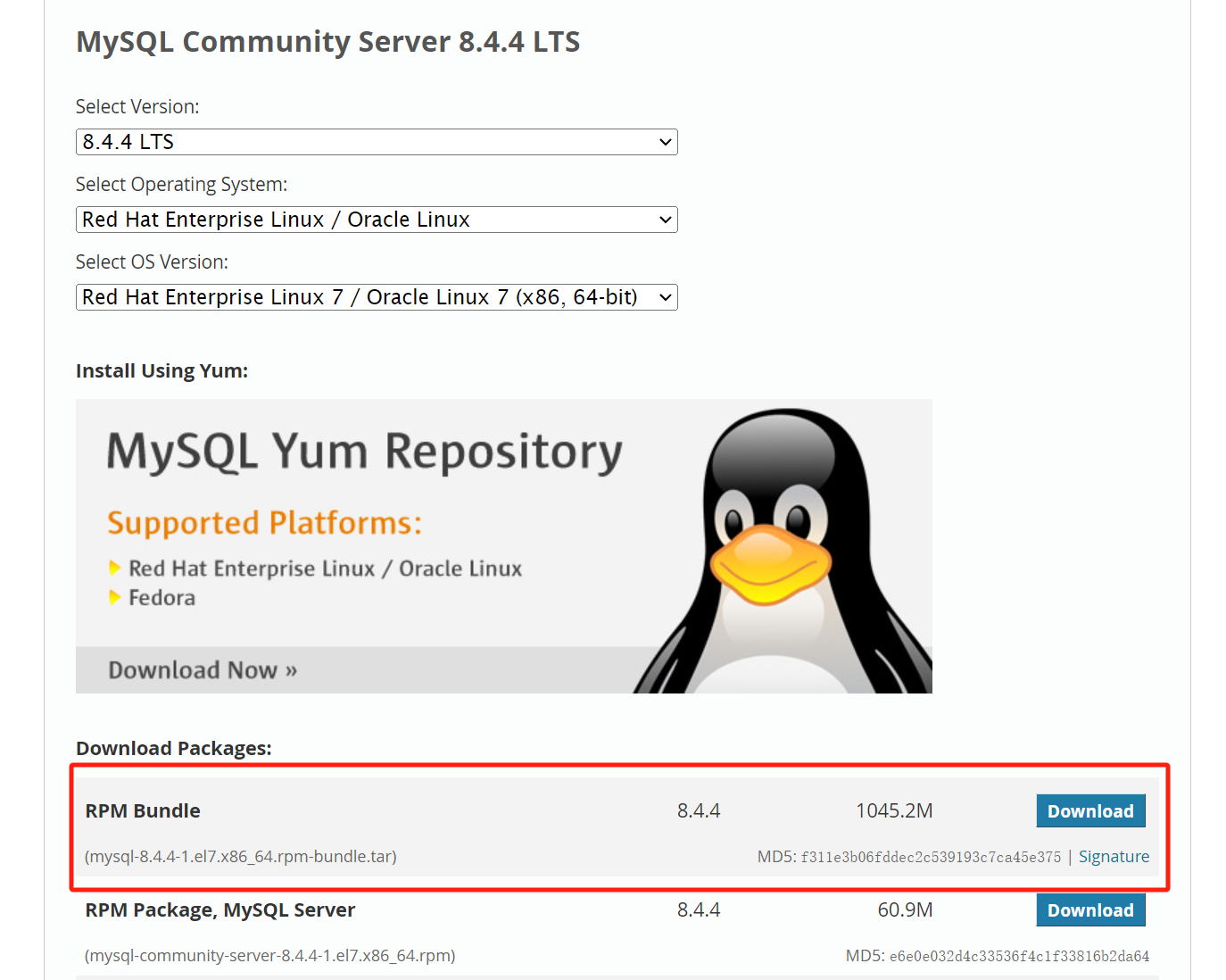 tar -xvf mysql-8.4.4-1.el7.x86_64.rpm-bundle.tar
